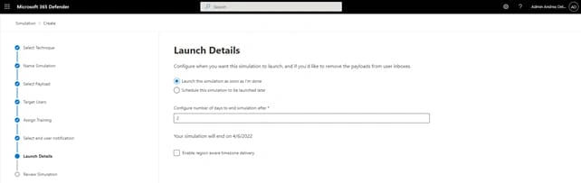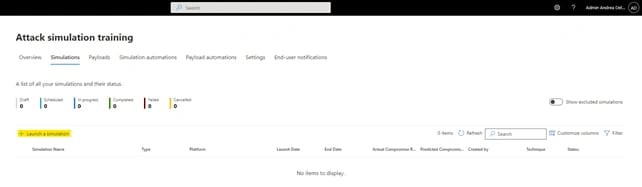 - Nel portale Microsoft 365 Security all’interno di Email & collaboration cliccare su Attack simulation training > Simulations tab.