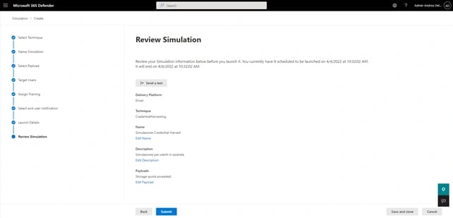 E' possibile usare Attack Simulation Training nel portale di Microsoft 365 Defender per eseguire scenari di attacco realistici all’interno della propria organizzazione. Questi attacchi simulati consentono di identificare e individuare gli utenti vulnerabili prima che un attacco reale colpisca la nostra infrastruttura.