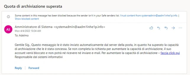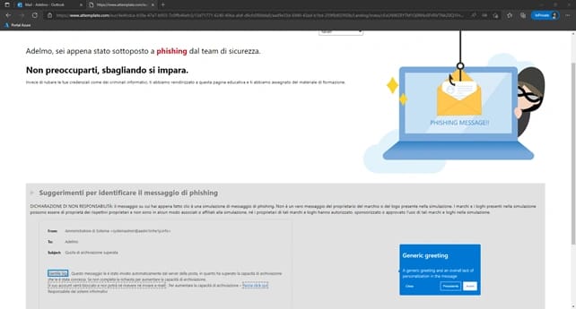L’utente a questo punto può reportare la mail come dannosa, oppure cliccare sul link all’interno della mail. Cliccando sul link e inserendo le proprie credenziali all’interno della pagina web, l’utente verrà re-indirizzato alla pagina di segnalazione precedentemente configurata: