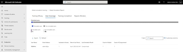 Se l'organizzazione dispone di licenze Microsoft 365 E5 o Microsoft Defender per Office 365 P2, che includono funzionalità di analisi delle minacce e di risposta, è possibile usare Attack Simulation Training nel portale di Microsoft 365 Defender per eseguire scenari di attacco realistici all’interno della propria organizzazione. Questi attacchi simulati consentono di identificare e individuare gli utenti vulnerabili prima che un attacco reale colpisca la nostra infrastruttura.