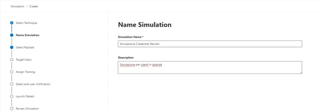 - Assegnare un nome e descrivere la simulazionee cliccare su Avanti