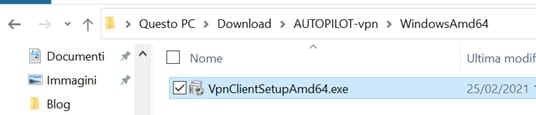 Per installare il client VPN eseguire il file, nel mio caso 64bit