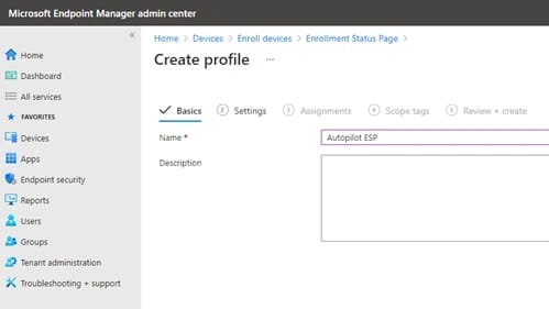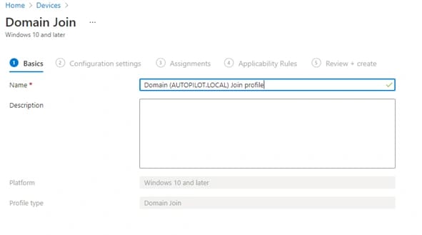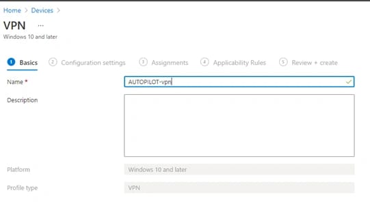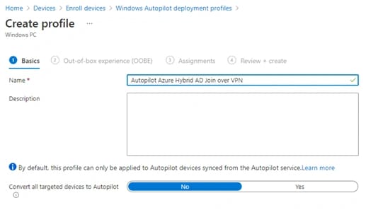 Creiamo un nuovo profilo che chiamiamo Autopilot Azure Hybrid AD Join over VPN