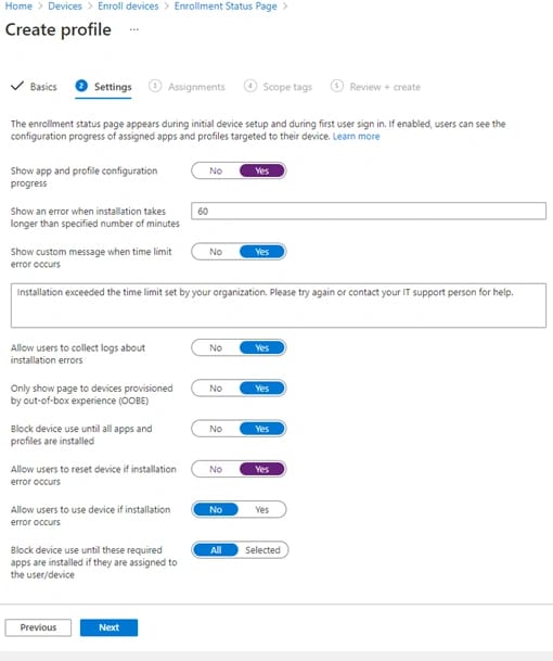 - Selezionamo Devices > Configuration profiles > + Create profile