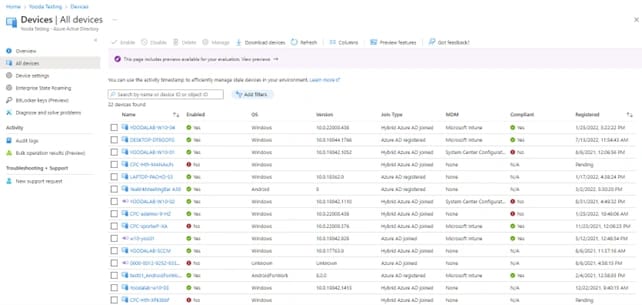 Con i dispositivi Azure AD registered e quelli Azure AD Join è possibile verificare la conformità del device e utilizzare le funzionalità di Conditional Access se gestiti da Endpoint Manager. Se il dispositivo è di proprietà dell’azienda, occorre valutare l’Hybrid Azure AD join o il join diretto ad Azure AD, secondo le necessità riportate in precedenza. Se si tratta di un dispositivo mobile (iOS/Android) o se il dispositivo è di proprietà dell'utente, utilizzare Azure AD registration.