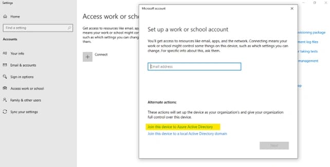 Azure AD Join è il metodo di registrazione destinato in primo luogo alle organizzazioni che puntano ad essere “Cloud-first”, quindi basata interamente sul cloud. Con questo metodo è possibile aggiungere il client direttamente su Azure AD.