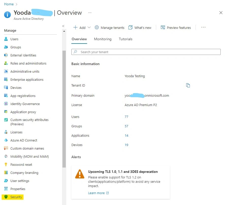 - Collegarsi al portale Azure AD -> Security Tab