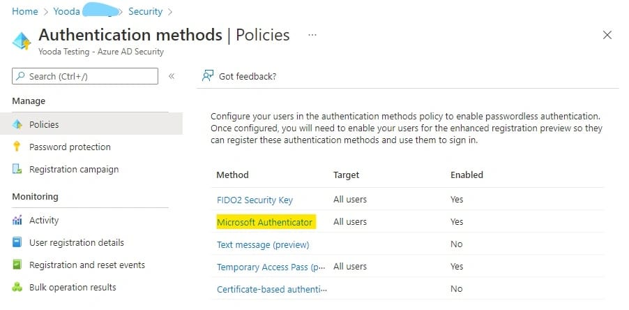 - Cliccare su Authentication methods