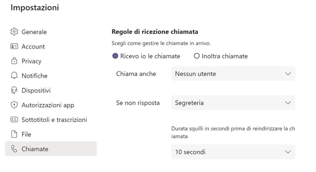 Il menu su cui andremo ad operare, sono le “Impostazioni” del nostro client Teams alla voce “Chiamate”: