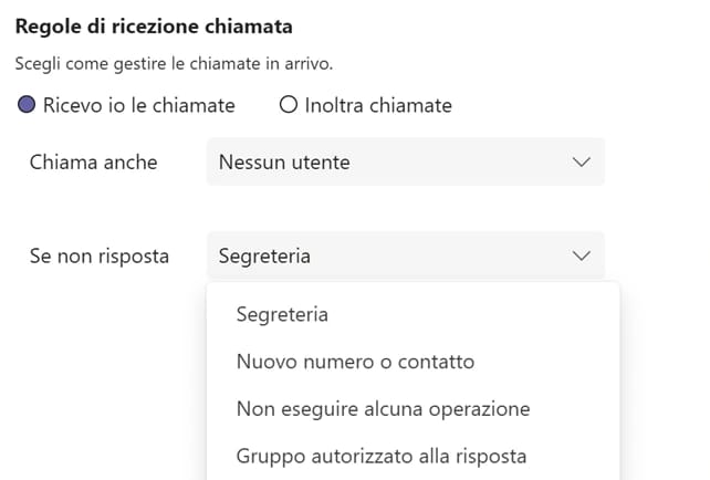 Teams Call Answering Rules, ovvero le modalità di gestione delle chiamate tramite il proprio client Teams.
