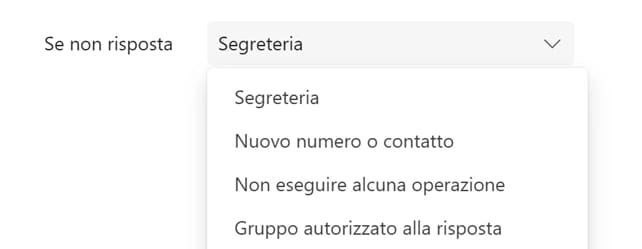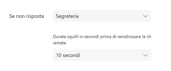 Possiamo gestire la chiamata che non viene risposta entro un numero di secondi (di default 10) inoltrando verso la segreteria: