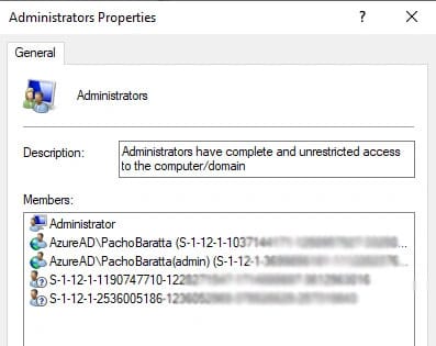 Quando si esegue la join ad AAD di un decice Windows 10, il gruppo dei local admins sarà fatto così: